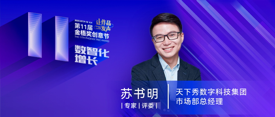 我们非常荣幸邀请到天下秀数字科技集团市场部总经理 苏书明 先生 加入专家评审团,与我们共同见证2025年营销创意标杆作品以及优秀服务机构的诞生,引领行业发展。